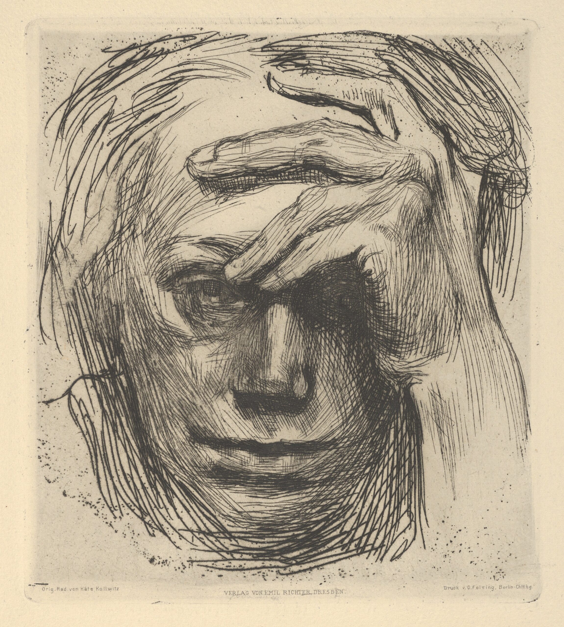 Käthe Kollwitz, Self-Portrait, Hand at the Forehead, 1910